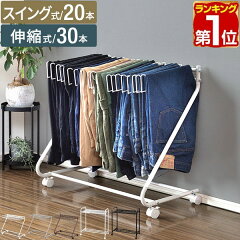 大きく開くスイング式で、選ぶ時ももらくらく スラックス、ジーンズ、パンツをすっきり20本収納! 高さ伸縮だから押入れやクローゼットにぴったり。